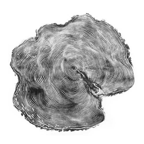 Bryan Nash Gill uses relief printing and a specific rubbing technique to create large prints from the cross-section of trees. You can buy a whole book of the images.