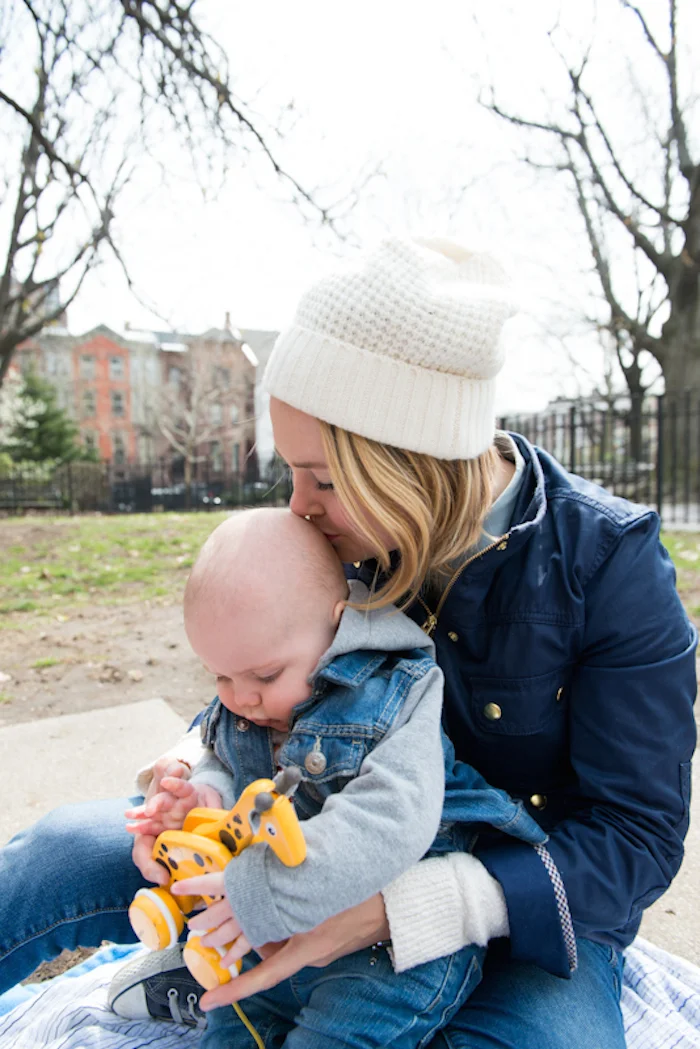 I have met the most amazing people at the playground. As I'm typing, I'm visualizing dozens of them—one of my most recent favorites was a mom from my new neighborhood. Just before I slipped Silas into the swing, she pulled out an already damp wipe from her jacket pocket and wiped a muddy puddle from the base of our swing, saving our first kind-of-Spring morning from cold, crying abyss. From that second, we were friends. Co-parents, almost. Our kids 'played' together. It was more about us tracking them under the monkey bars, through the slide—while coming in and out of conversation about our impending move to San Francisco, her story of going back to art school, our kids' milestones. Next to the giant X-O-X-O spinning blocks, we talked about how it's hard, like really, really hard sometimes, to just live here. To be a mom and try to feed and protect our tiny humans. To feel such love and such frustration with a place. The ups and the downs and taking chances on a thankless city year in and year out. And she said it so perfectly, almost in a whisper like she was honoring the confidants we had become to each other, It's New York. We're here. It's amazing.