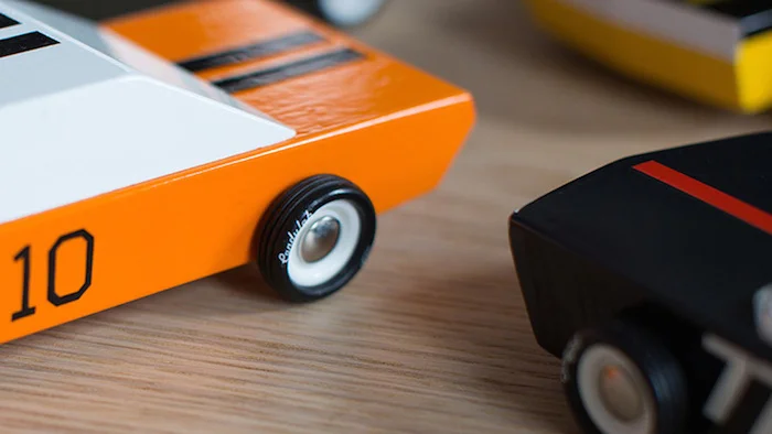 Big fan of wooden toys—they don't have to be pale or white. We love color over here! These CandyLab Toys wooden cars are adorable. They were kind enough to send over the orange GT-10 and the boys loved it. Perfect gift for a three-year-old. The cars ship in 48 hours, are solid birch, and are classic beauties. Shelf 'em, or play with 'em.